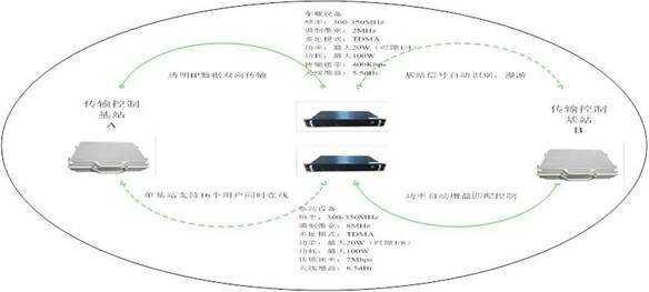 为最大限度节约频点资源,多个移动前端可共用一个频点,由中心实时切换监控点设备及对应基站的工作\待机状态,实现对各移动前端监控轮巡。