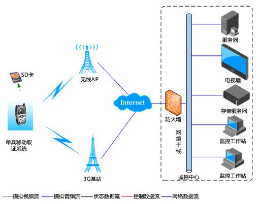 2.单兵监控系统:由手持式4G无线图像传输设备和便携式4G无线图像传输设备组成,由执法人员携带,通过4G无线网络传输到指挥中心。