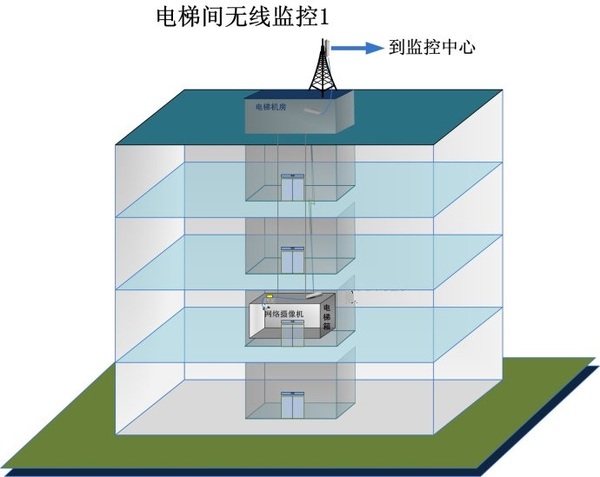 根据客户提供的信息,这是一个小区内的电梯监控。该小区内有3栋电梯楼,每栋楼里面有2部电梯,一共6部电梯需要安装摄像头进行安全监控。监控中心位于小区保安室内。有一栋电梯楼与监控中心无阻挡。电梯楼顶之间是可视的。